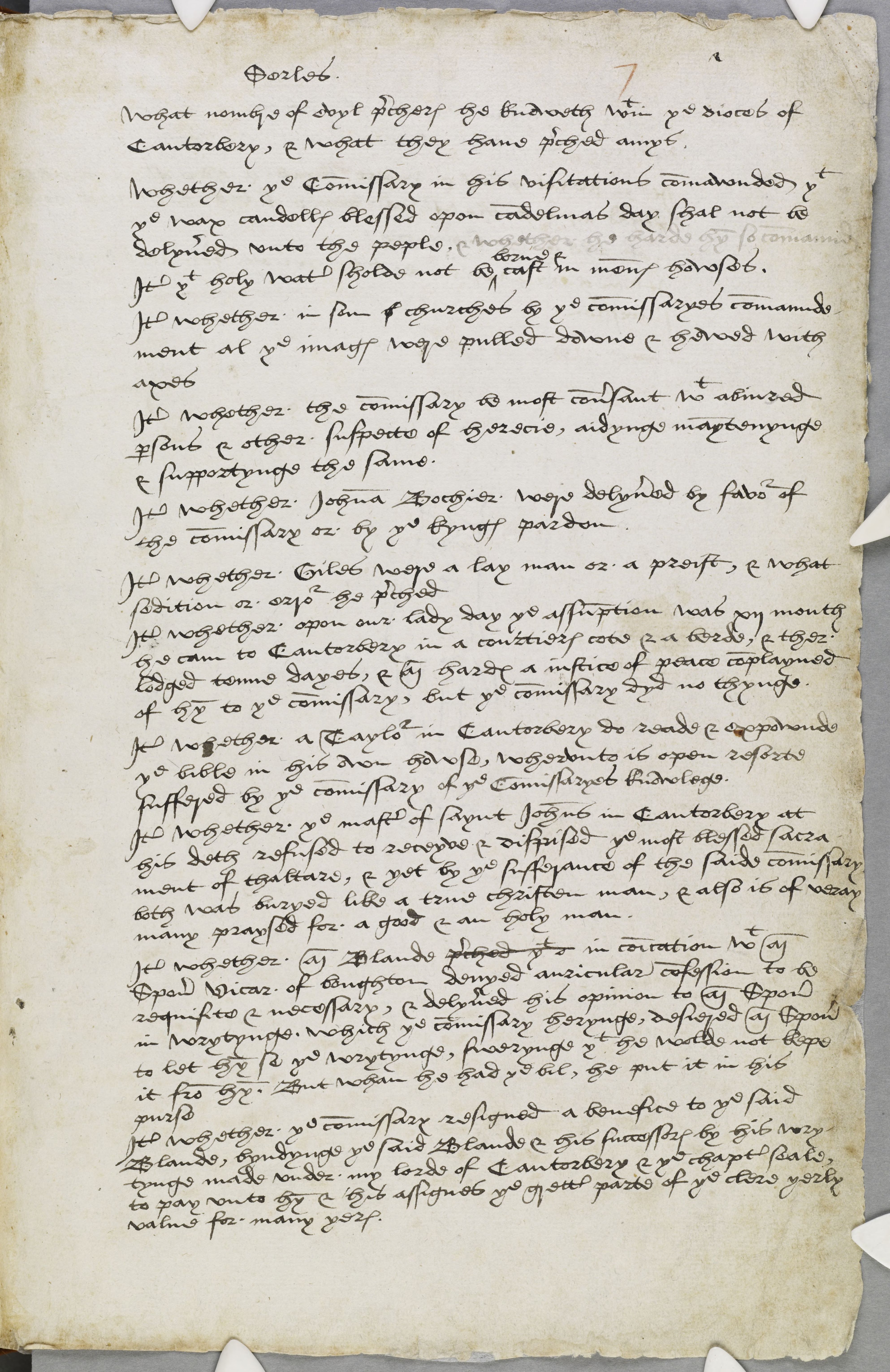 Item whether the master of saynt Johns in Cantorbery at his deth refused to receyve & dispised the most blessed sacrament of thaltare, & yet by the sufferance of the saide commissary both was buryed like a true christen man, & also is of veray many praysed for a good & an holy man.