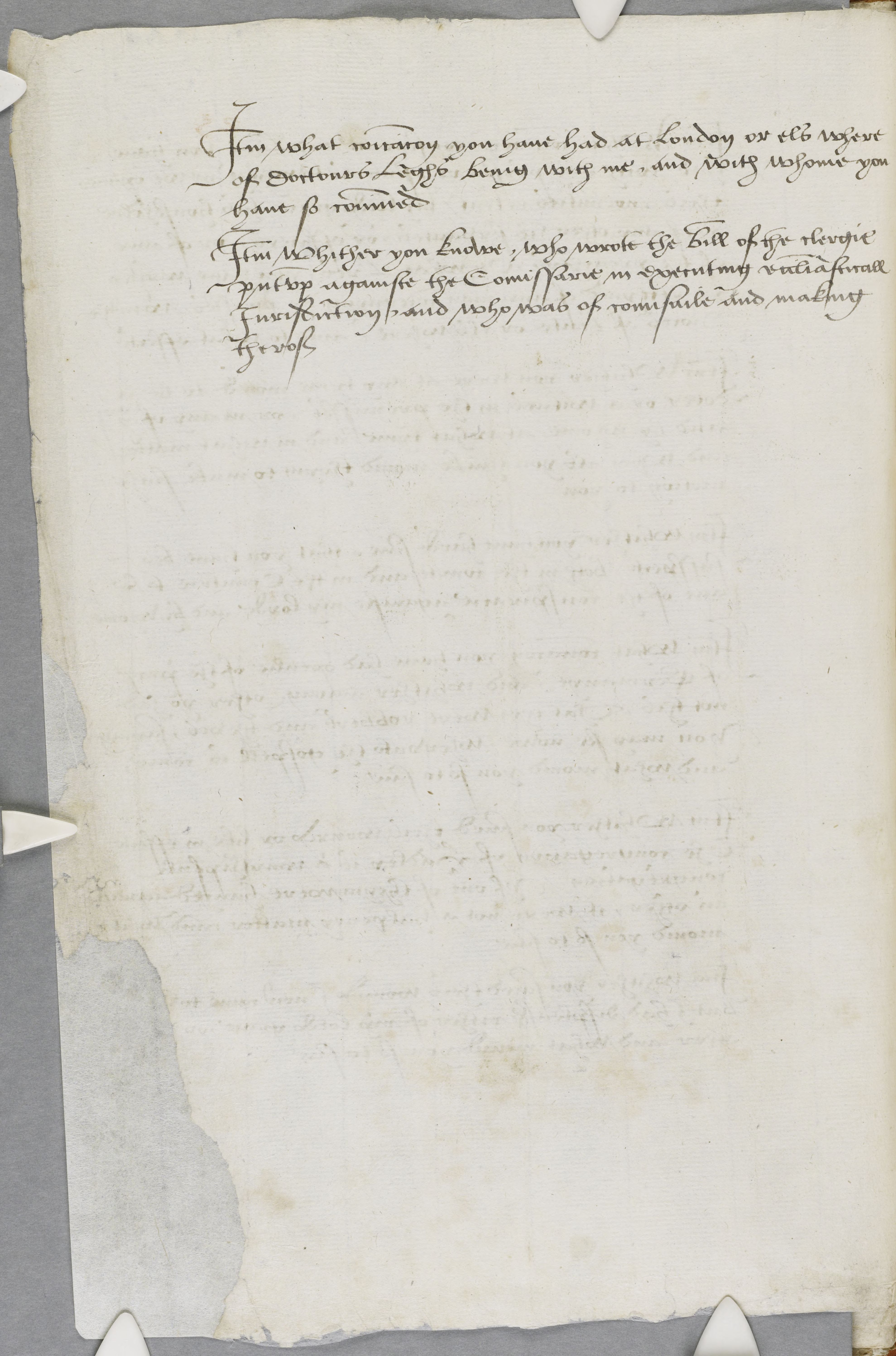 Item Whither you knowe, who wrote the bill of the clergie put up againste the Comissarie in executing ecclesiasticall Jurisdiction, and who was of counsaile and making therof