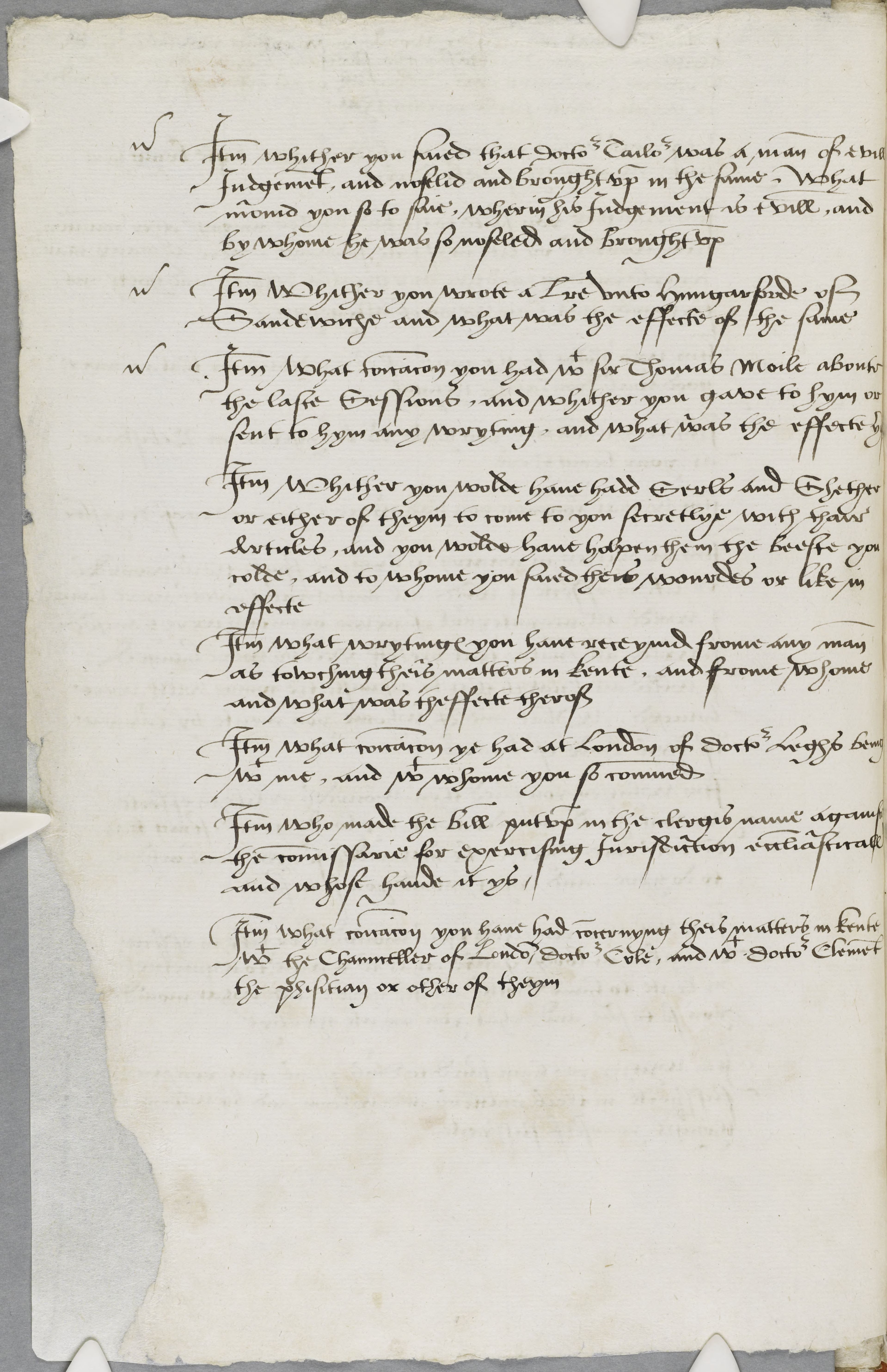 Item what communicacion you haue had concernyng theis matters in kente with the Chaunceller of London, Doctor Cole, and with Doctor Clement the phisitian or other of theym