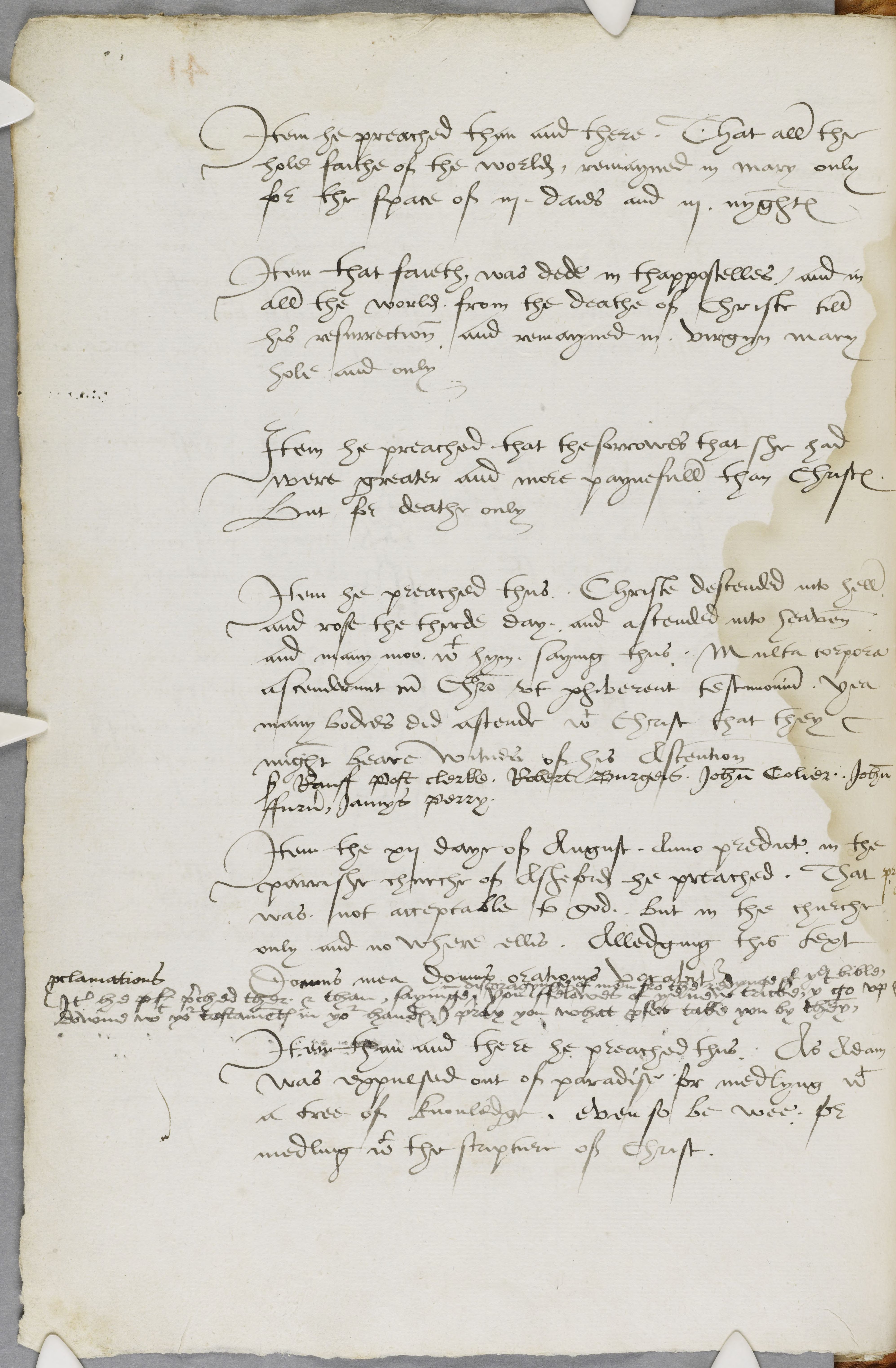Item he preached than and there. That all the hole faithe of the world, remayned in mary only for the space of iii daies and iii nyghtes
