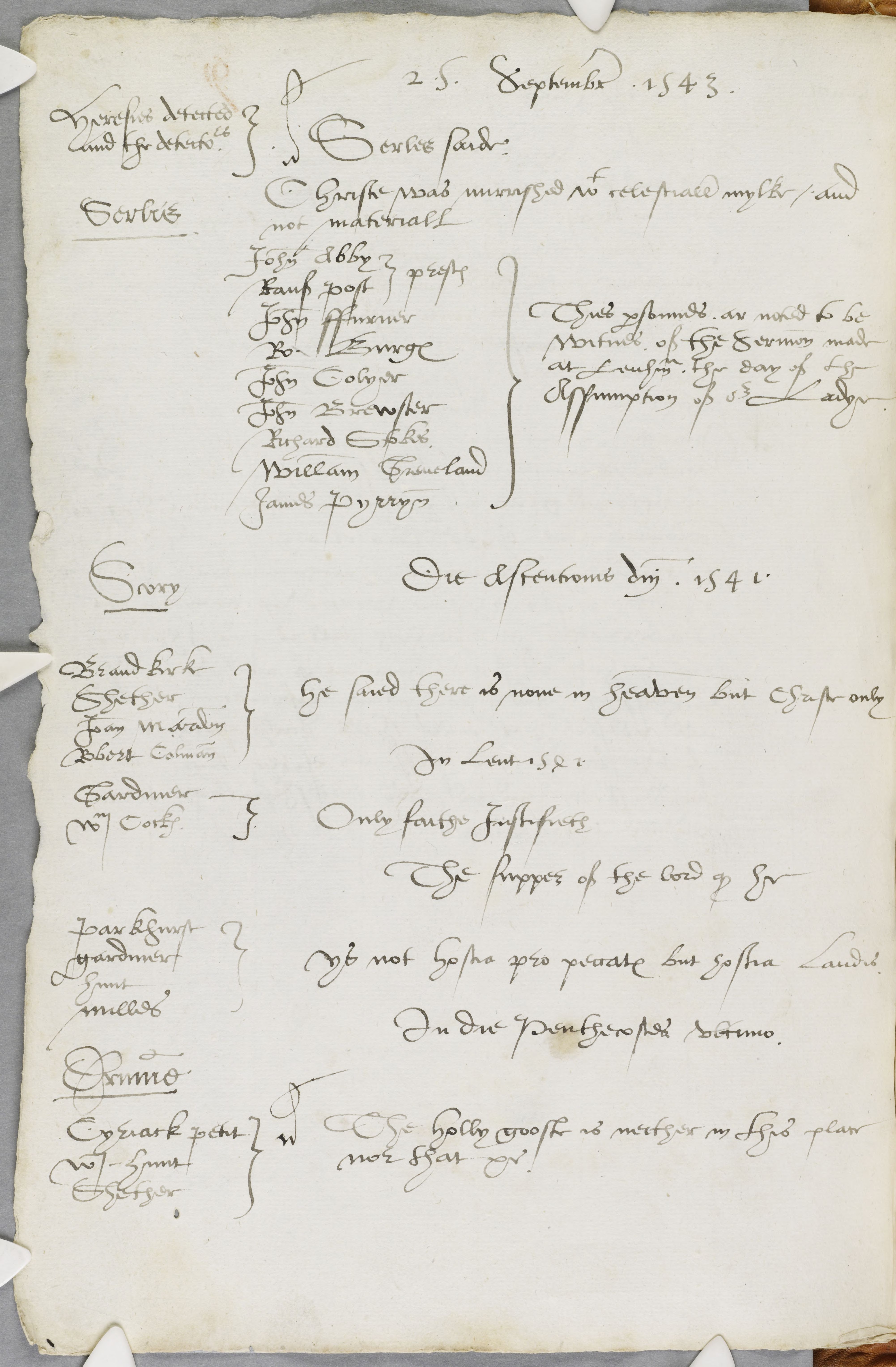"Only faith justifieth" : Ws., Gardiner, Wm. Cockes. (3.) "The Supper of the Lord, quod he, is not hostia pro peccatis but hostia laudis. Ws., Parkhurst, Gardiner, Hunt, Milles.