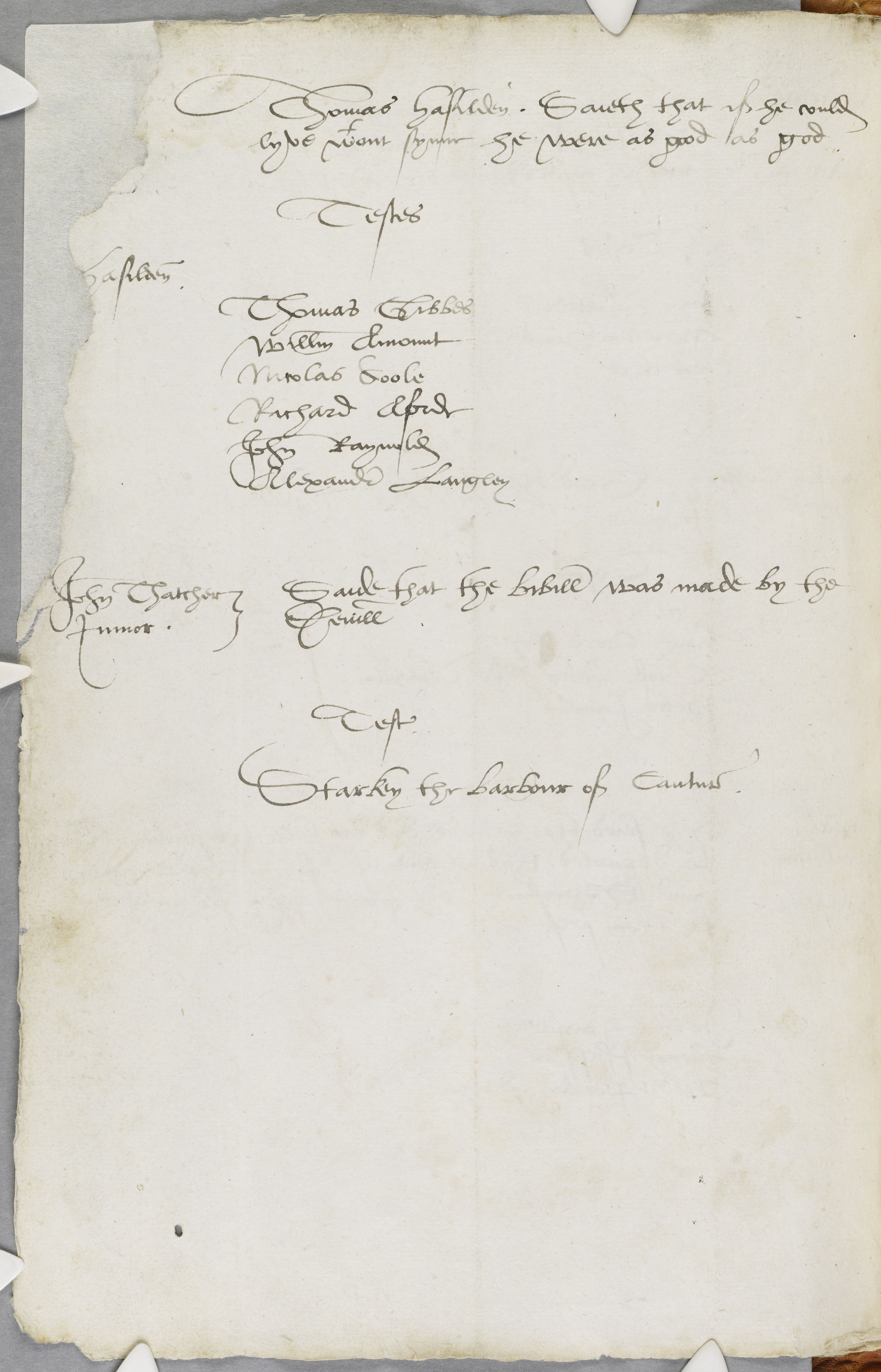 Thomas Hasilden "sayeth that if he could live without sin he were as good as God." Six Ws. John Thatcher junior "said that the Bible was made by the Devil." Ws. Starkey the barber of Canterbury.
