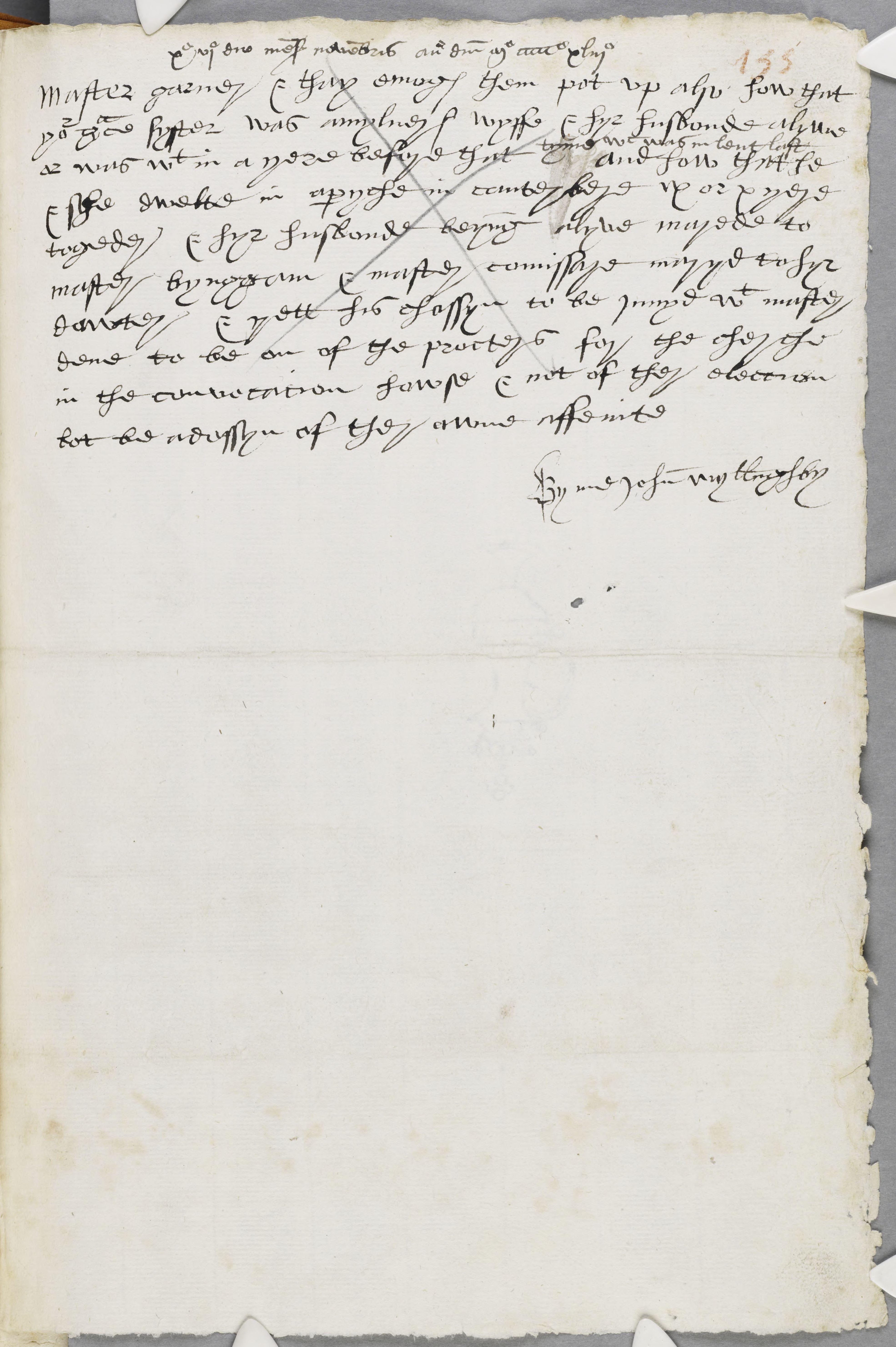 Master garner & thay emoges them pot up also how that your grace syster was amylners wyffe & hyr husbonde alywe or was within a yere before that tyme which was in lent last and how that he & she dwelte in aparyche in canterbere ix or x yere togeder & hyr husbonde beyng alyve marede to master bynggam & master comissare maryd to hyr dawter & yett his chossyn to be junyd with master dene to be on of the procters for the cherche in the convocacion howse & not of ther elecion bot be adassyn of ther awne affenite