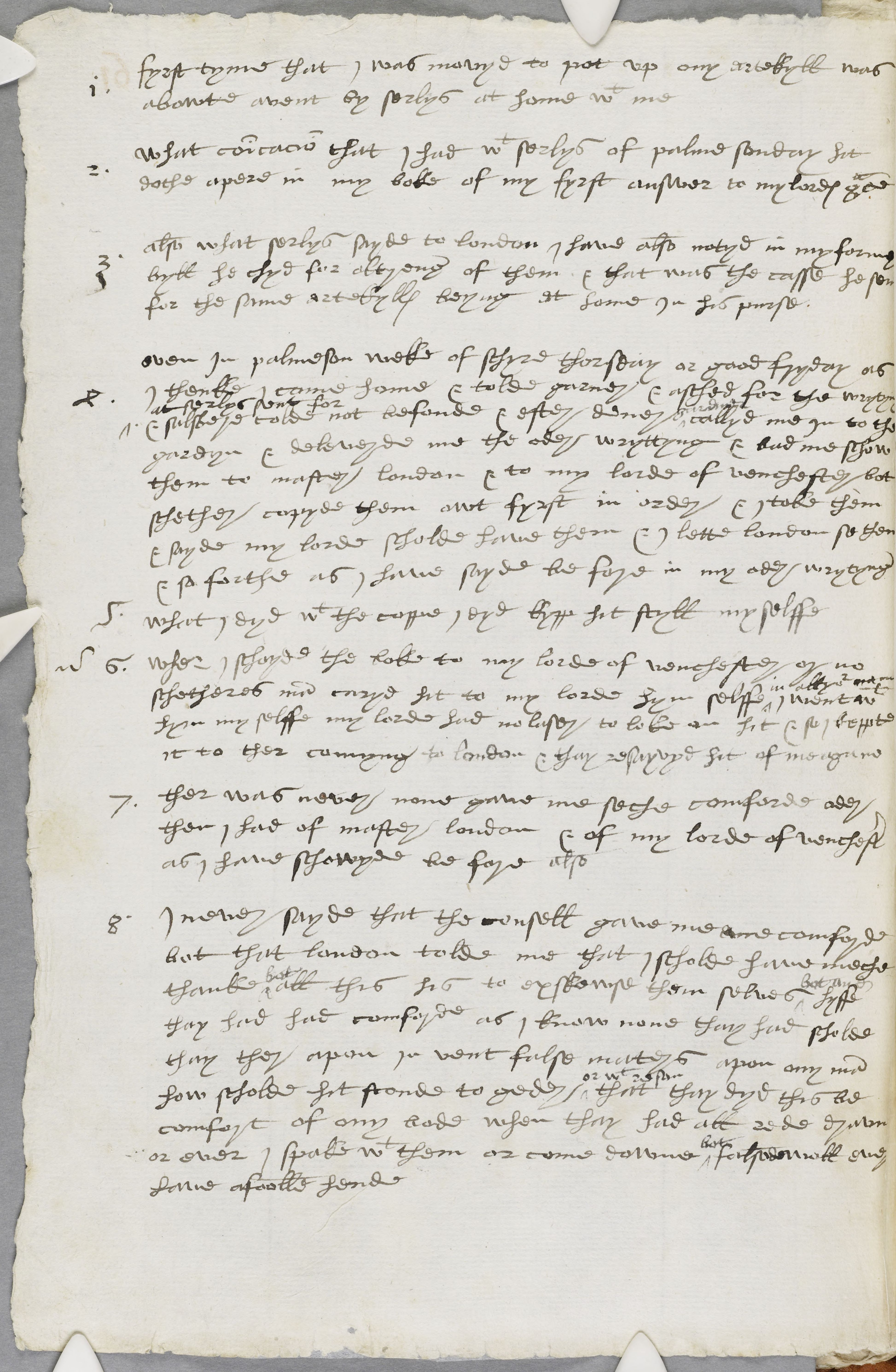 I never sayde that the consell gave me ane comforde bot that london tolde me that I scholde have meche thanke bot all this his to exskewse them selves bot and hyffe thay had had comforde as I know none thay had scholde thay ther apon In vent false maters apon any man how scholde hit stonde to geder or with reson that thay dyd this be comfort of ony bode when thay had all rede drawn or ever I spake with them or come downe bot falsodewoll ever have afoolle hende