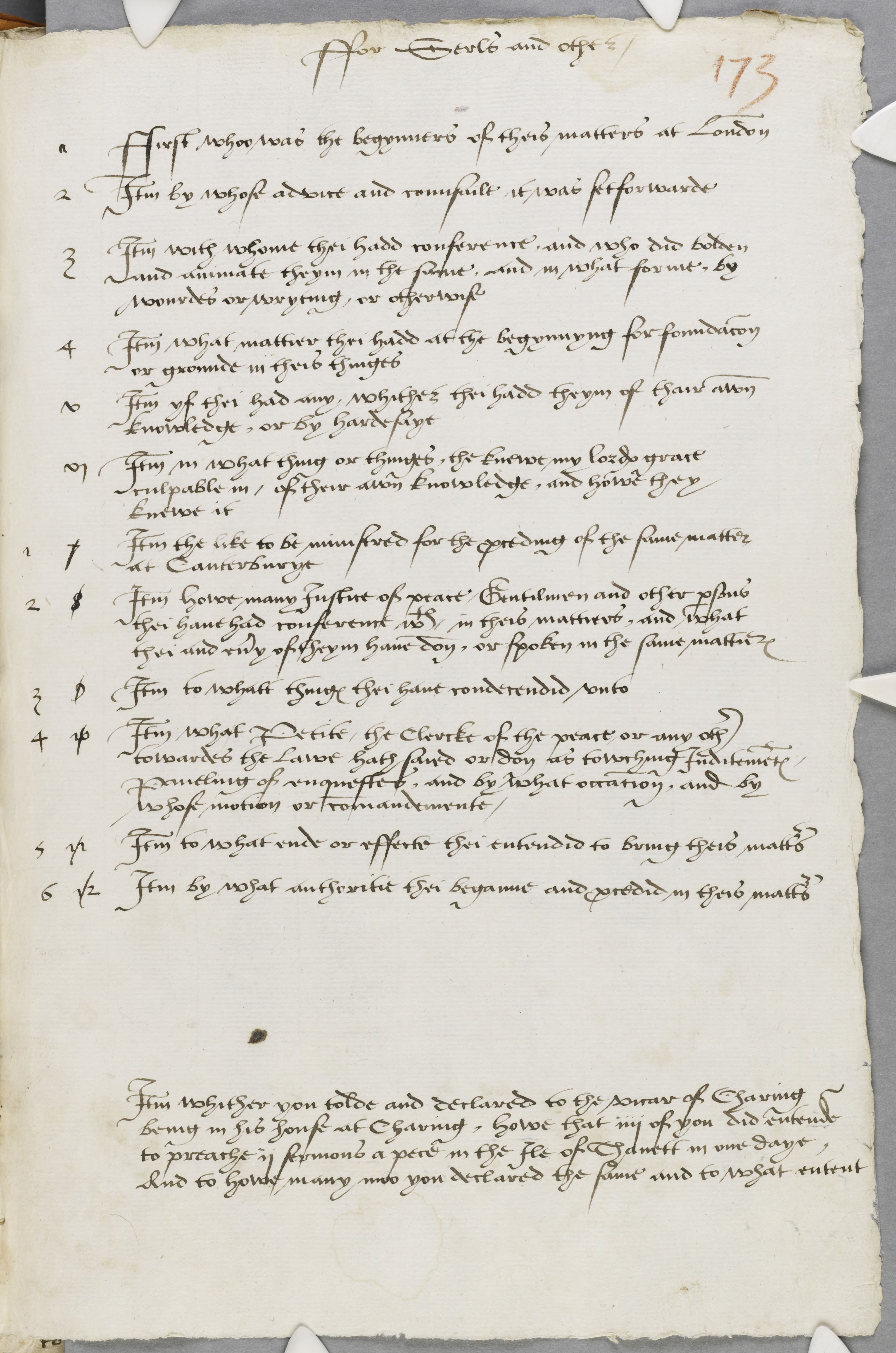 Item whither you tolde and declared to the vicar of Charing being in his house at Charing, howe that iiii of you did entende to preache ii sermons a pece in the Ile of Thanett in one daye, And to howe many moo you declared the same and to what entent