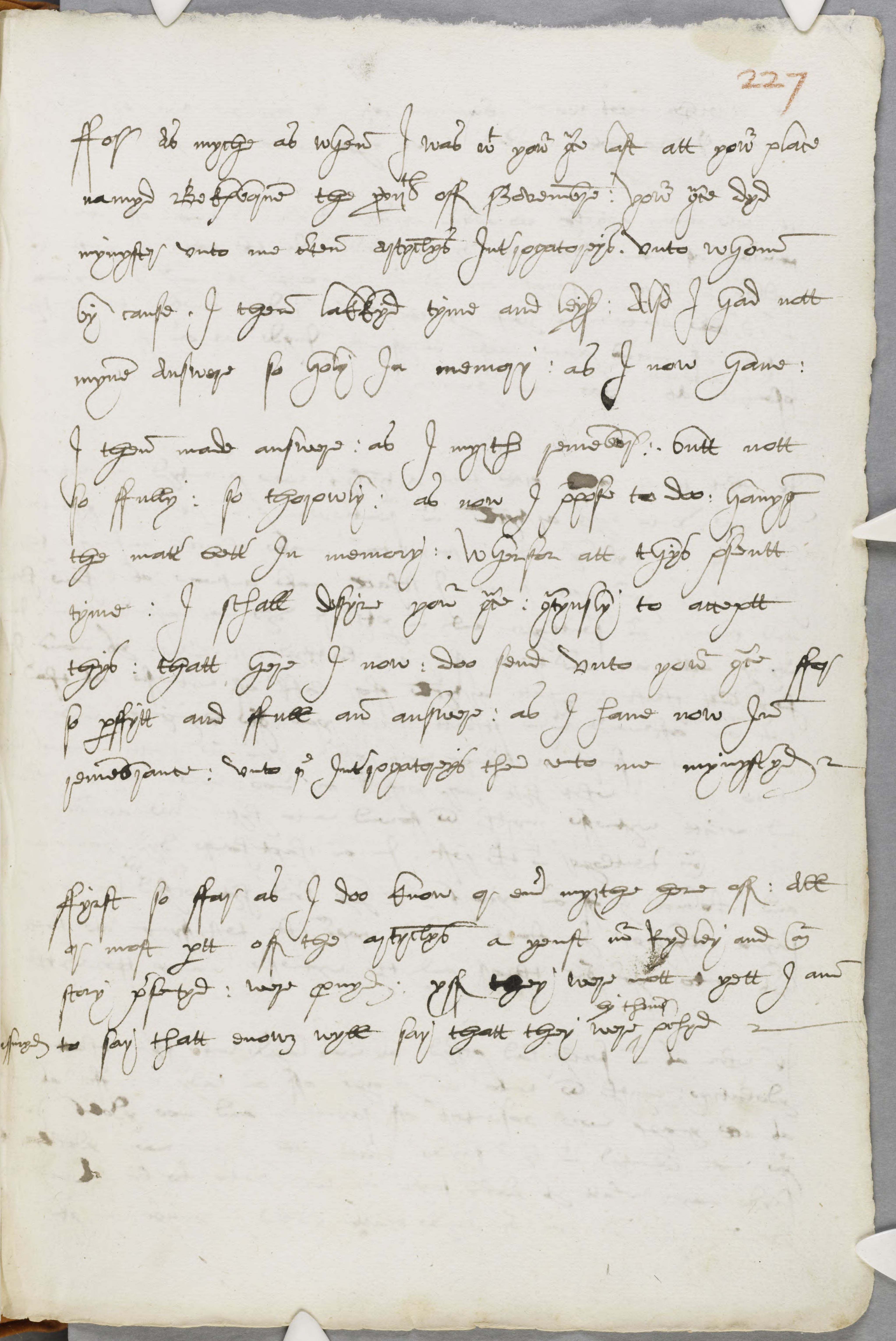 ffor as myche as when I was with yowr grace last att yowr place namyd Bekesborne the xviith off Novembre: Yowr grace dyd mynyster unto me certen artycles Interrogatoreys. Unto whom by cause. I then lakkyd tyme and leysur: Also I had nott myne Answere so holy In memory: as I now have: