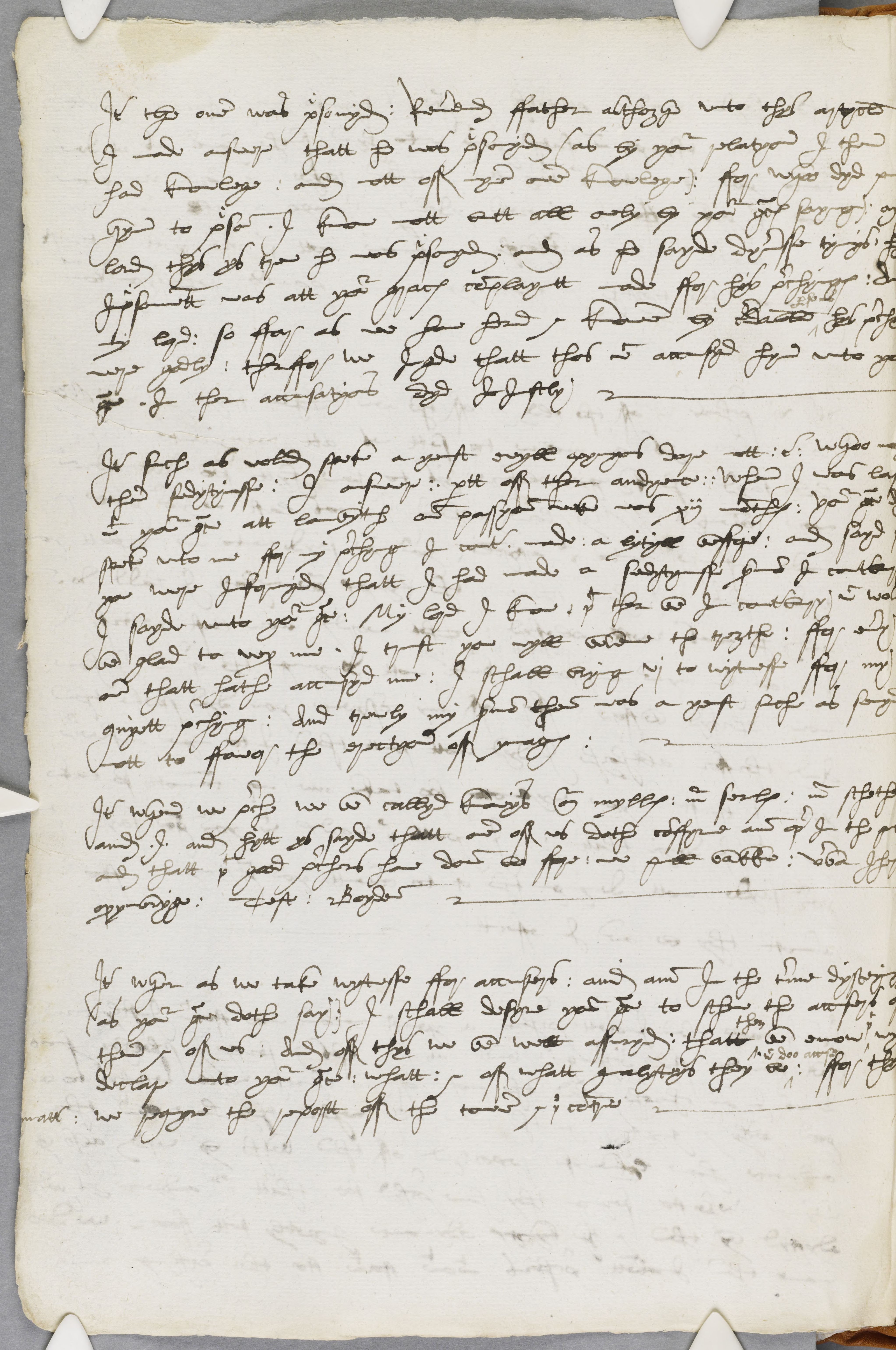 Item the one was prisonyd: Reverend ffather althoghe unto thys artycle I made answere thatt he was prisonyd (as by your relatyon I then had knowlege: and nott off myne owne knowlege): ffor whoo dyd put hym to prison. I know nott butt all onely by your graces saying): my lord thys ys trew he was prisonyd: and as he sayde dyversse tymys hys he Inprisonmentt was att your graces complayntt made ffor hys prechyinges And my lord: so ffar as we have herd & knowe by credable persons hys prechingsyng were godly : therffore we jugde thatt thos which accusyd hym unto your grace In ther accusacyons dyd Injustly