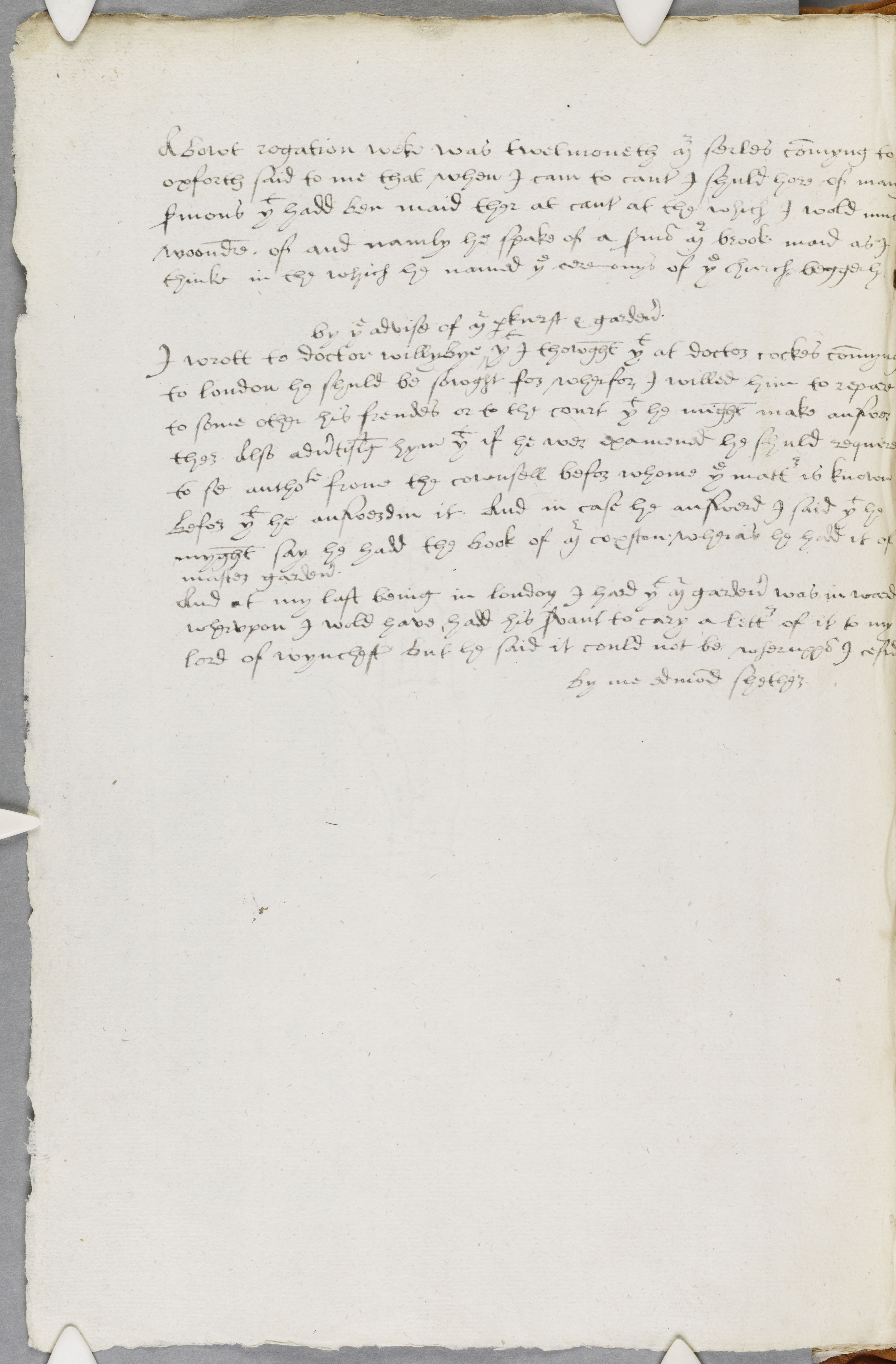 And at my last being in london I hard that Mr gardener was in ward wherupon I wold have hadd his servant to cary a letter of it to my lord of wynchester but he said it could not be wheruppon I cesid (??)