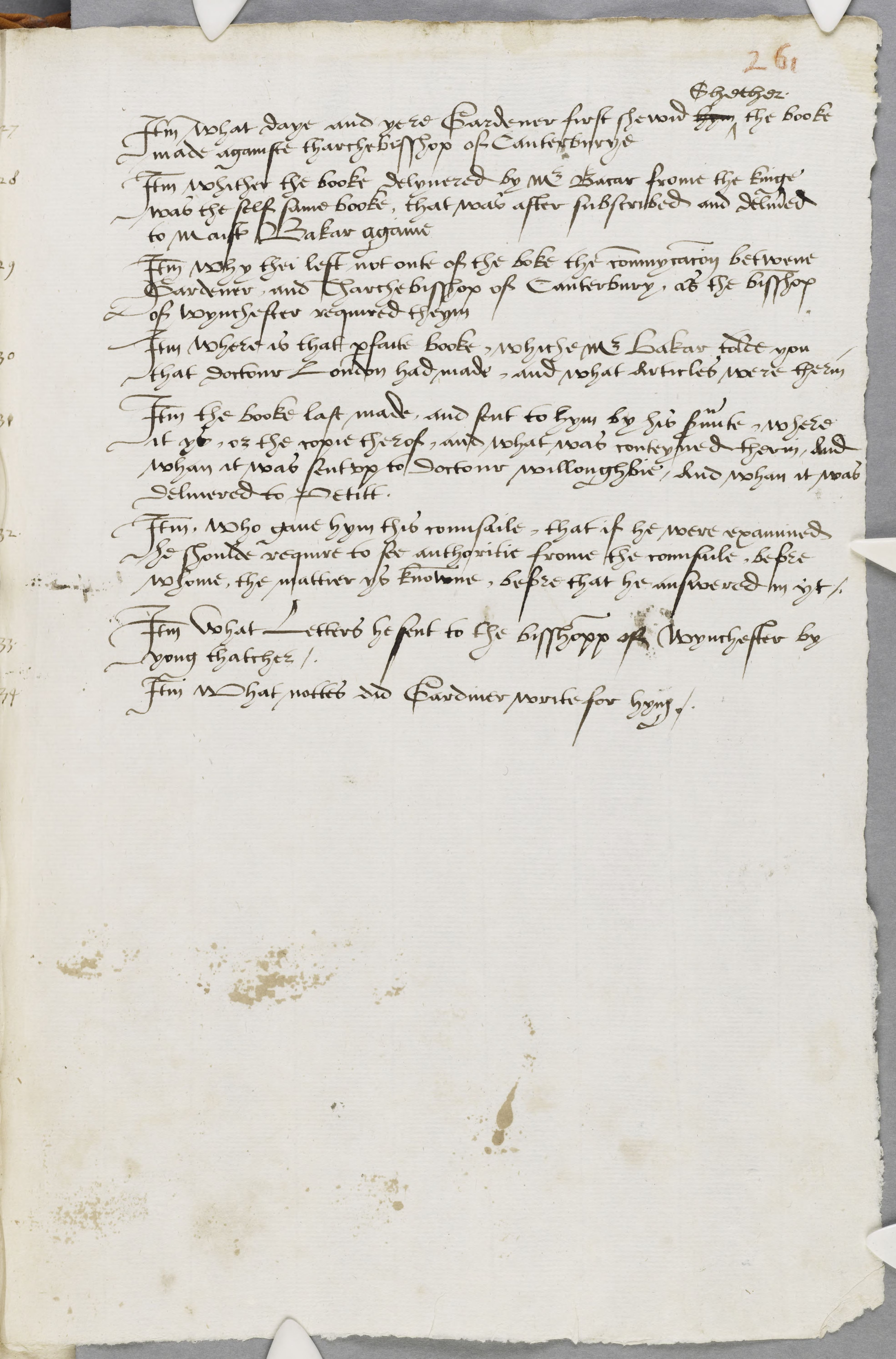 Item what daye and yere Gardener first shewid hym Shether the booke made againste tharchebisshop of Canterburye