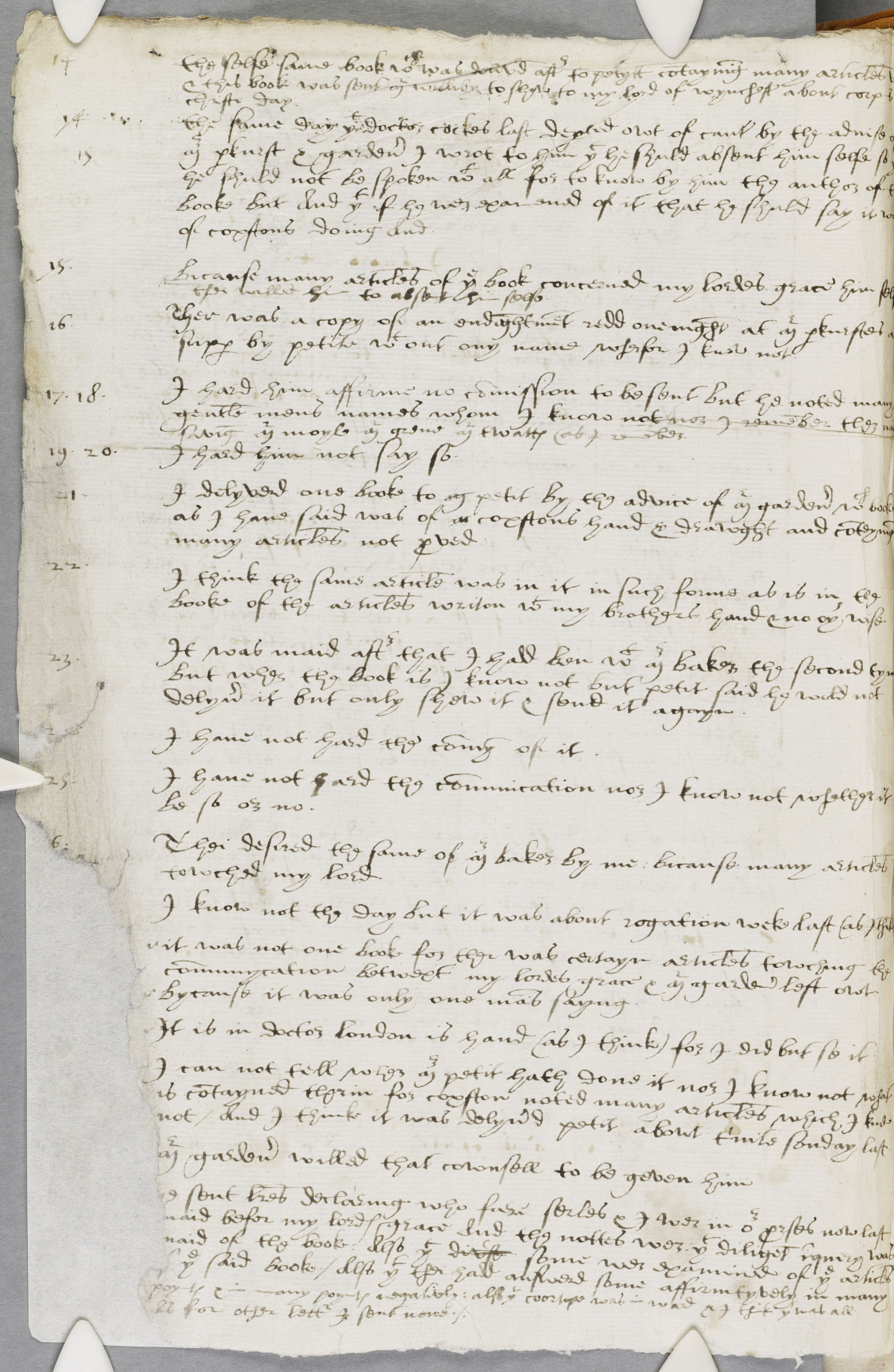 I know not the day but it was about rogation weke last (as I think) it was not one book for ther was certayn articles towching the communycation betwext my lordes grace & mr gardener left owt bycause it was only one mans saying