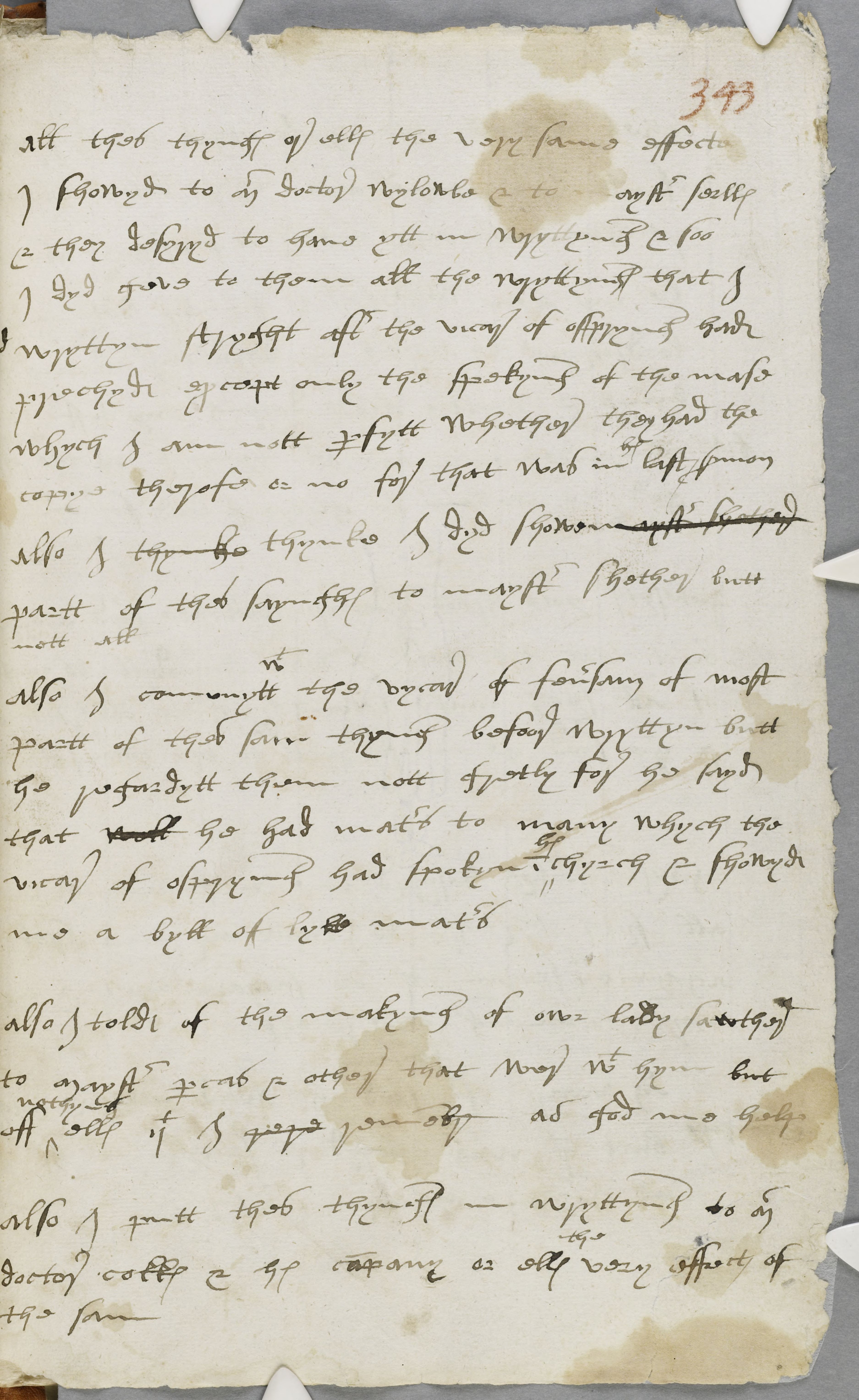 All thes thynges other elles the very same effecte I showyd to mr doctor Wylowbe & to mayster serles & then desyryd to have ytt in wryttyng & soo I dyd geve to them all the wryttyng that I had wryttyn stryght after the vicare of osspryng had prechyd except only the spekyng of the mase whych I am nott profytt whether they had the copye therofe or no for that was in his last sermon Also I thynke thynke I dyd showen master schether partt of thos sayngthes to mayster shether butt nott all